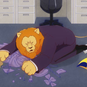 デスクの下にハチの巣があるという謎状況はさておき、ラーテルに頼らずにハチミツを採ろうとした結果、爆弾をその場に放り出してライオンたちの部署を吹き飛ばしてしまったミツオシエ。